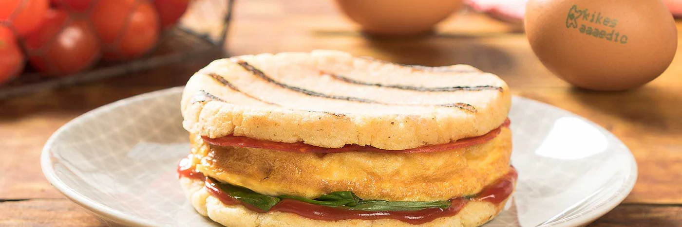 AREPA CON ROSA DE AGUACATE Y KIKES POCHADO